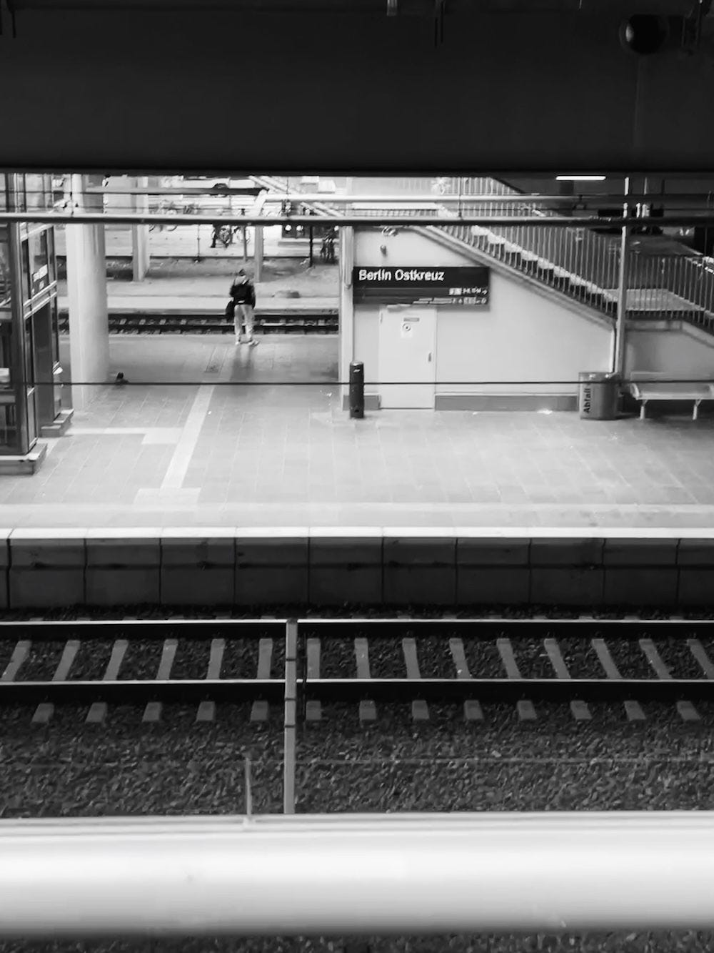I took this pic while rushing to the train yesterday. I loved how the composition looked, the tube in the foreground giving depth, and the person in the background framed by the concrete and the cables surrounding them. My eyes snapped while the escalator was taking me away from that moment.