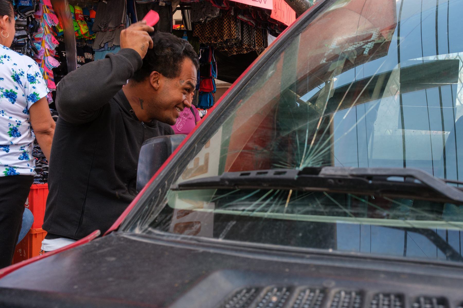 Of course I get to know someone. I enjoy small talks with Jairo. He got my attention while he was combing his hair looking at the mirror of a car. He's proud of his English and likes to switch between languages.