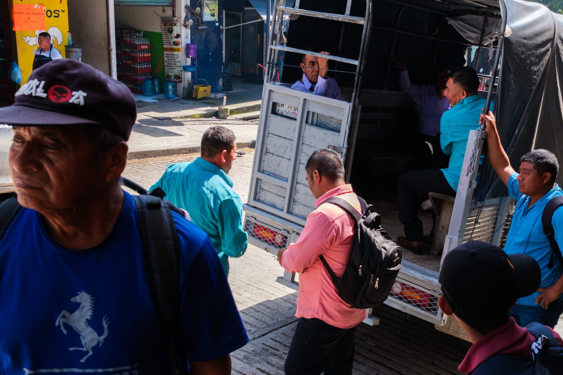 People look more curious than annoyed when I pass in between with the camera while saying "Buenos días". Most of them react well to big smiles and goofy movements. A few times I sense it's better to take down the camera, but overall I'm having a great time.
