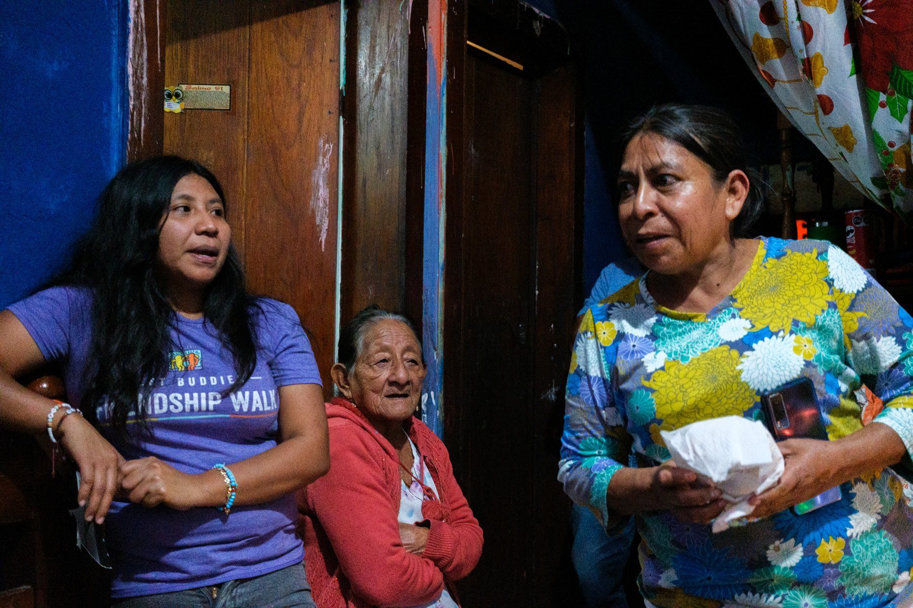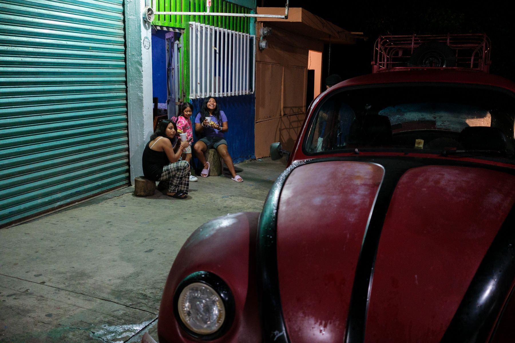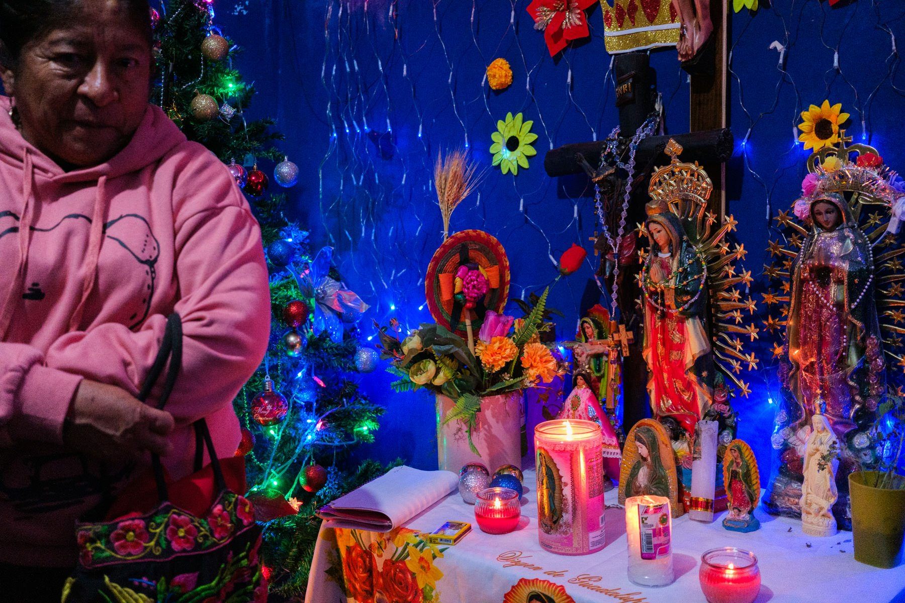 I roam a bit around when I'm attracted by a group of people. A family by the size and kind of interactions between them. I look inside the place from the other side of the street and I see a Christmas tree and some colorful lights. A few steps after passing this scene, I decide to go back and just be curious. I say hello and ask what's going on. There is always something magical about approaching big gatherings of families and friends.