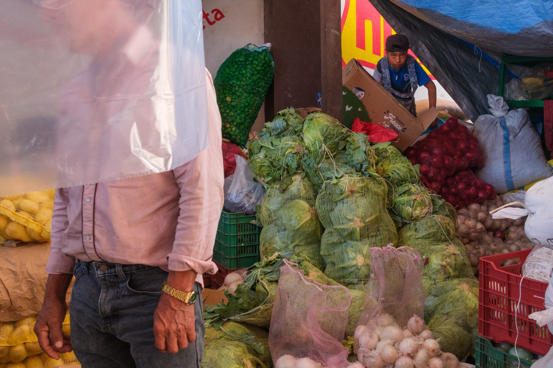 I wake up the morning after with a bit of a sore throat and decide to get out and explore the town with sunlight. Yesterday's clouds are gone. The dark streets that looked sketchy last night, now are full of people. I sink in the buzz while I walk my way to a local food and veggie market: these places are usually the small towns' heartbeat.