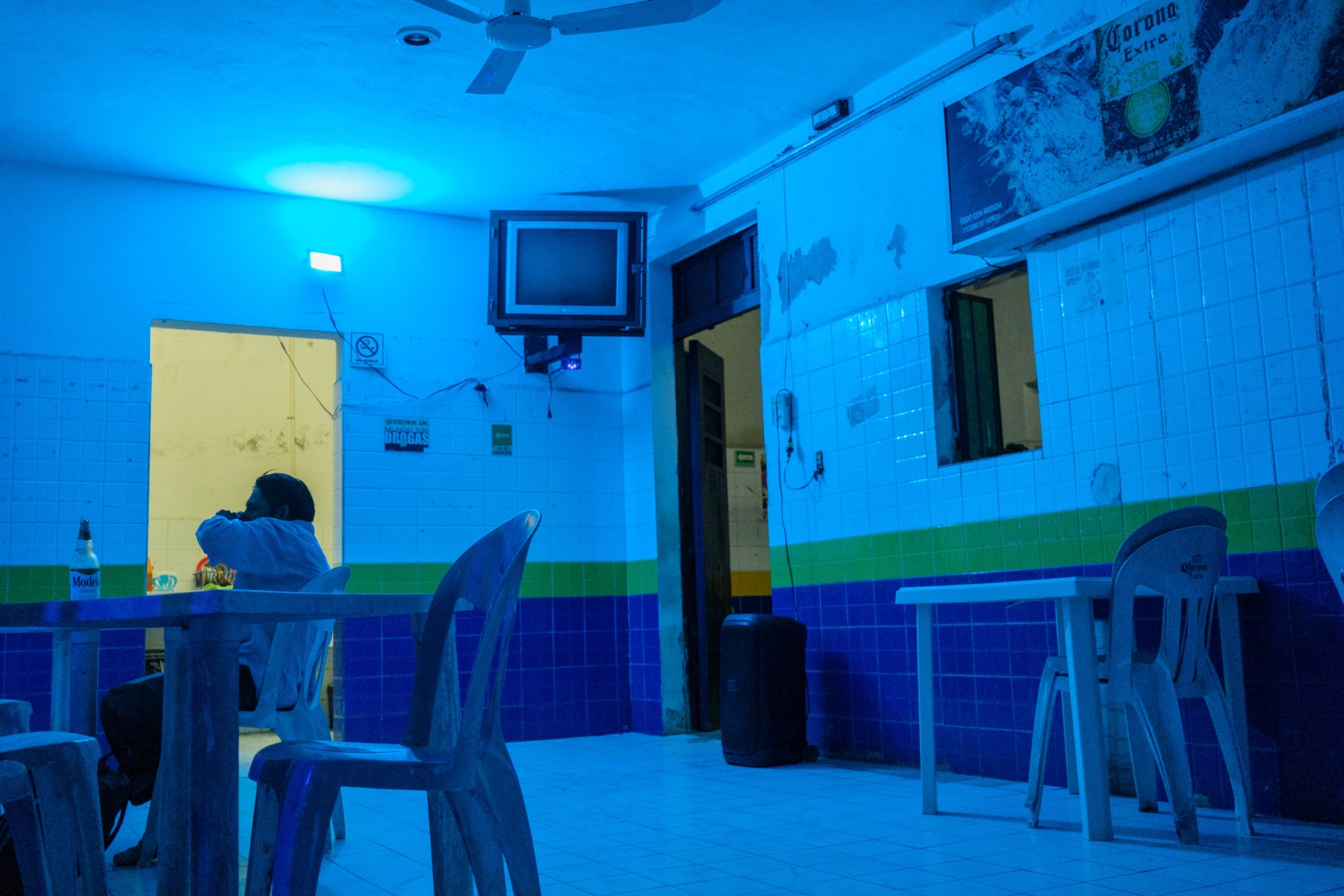 The vibes of this night remind me of rural Thailand, in particular Chiang Dao. Green lights hitting colored walls as life winds down for the night.