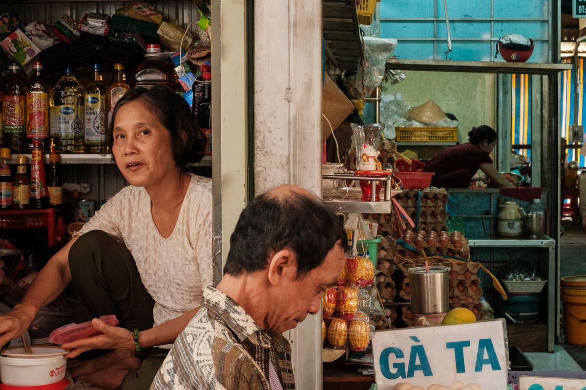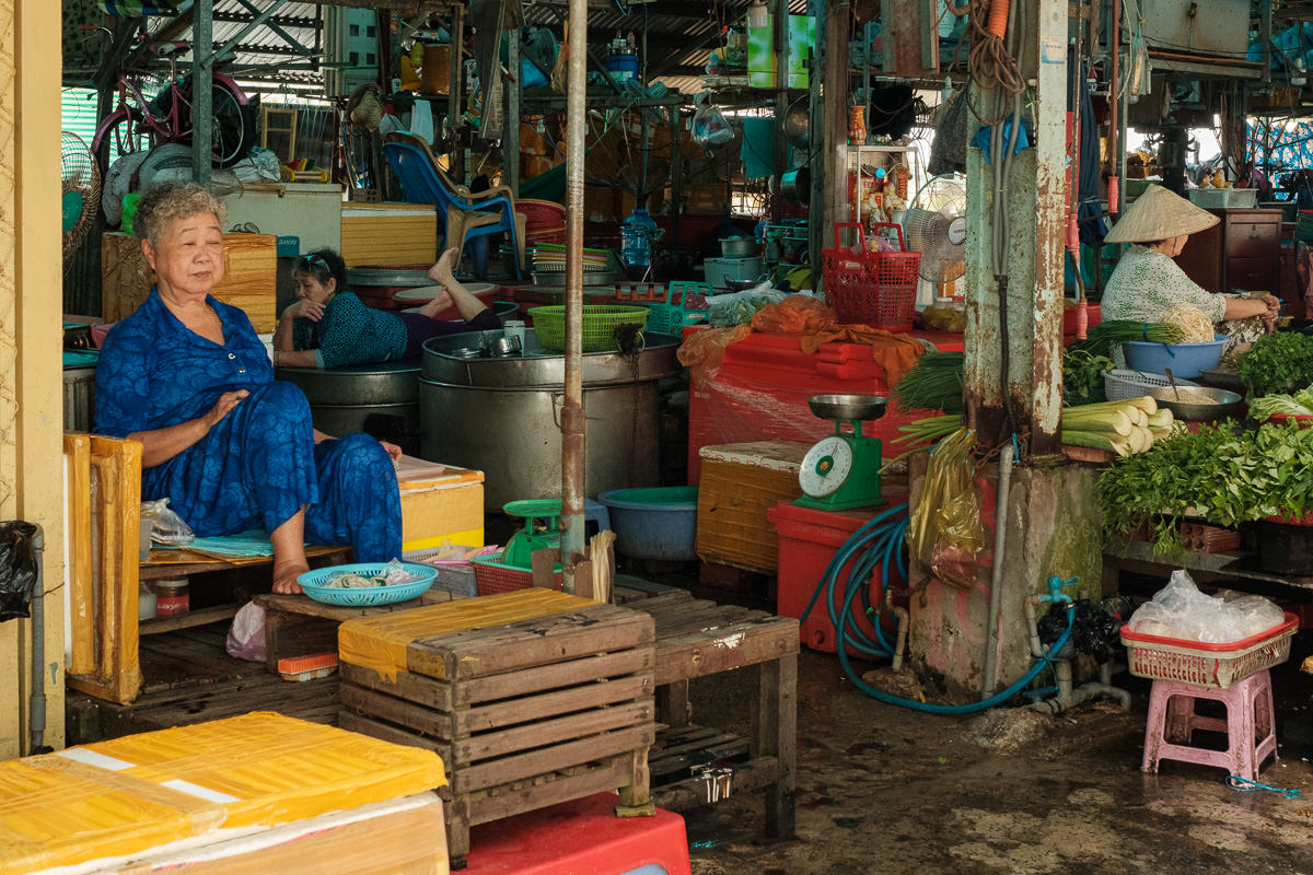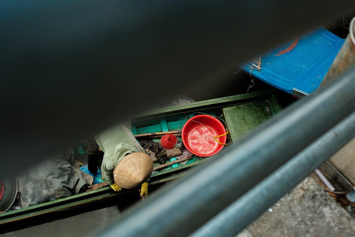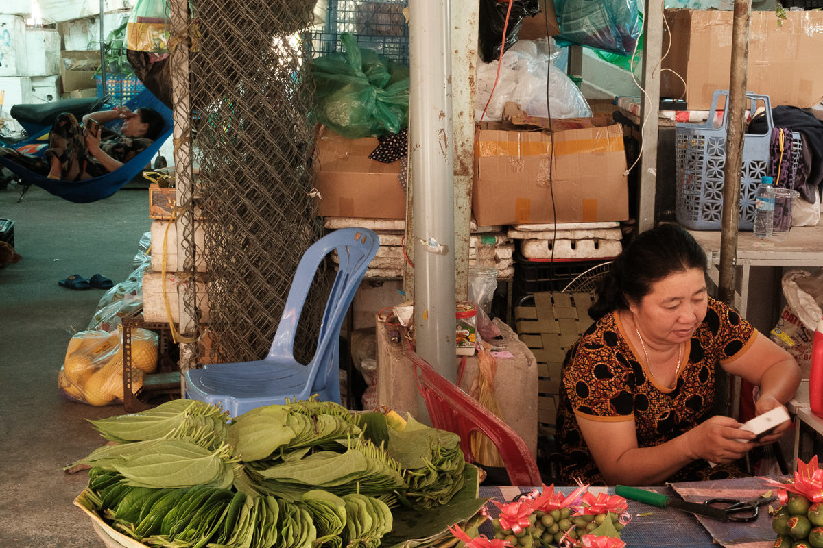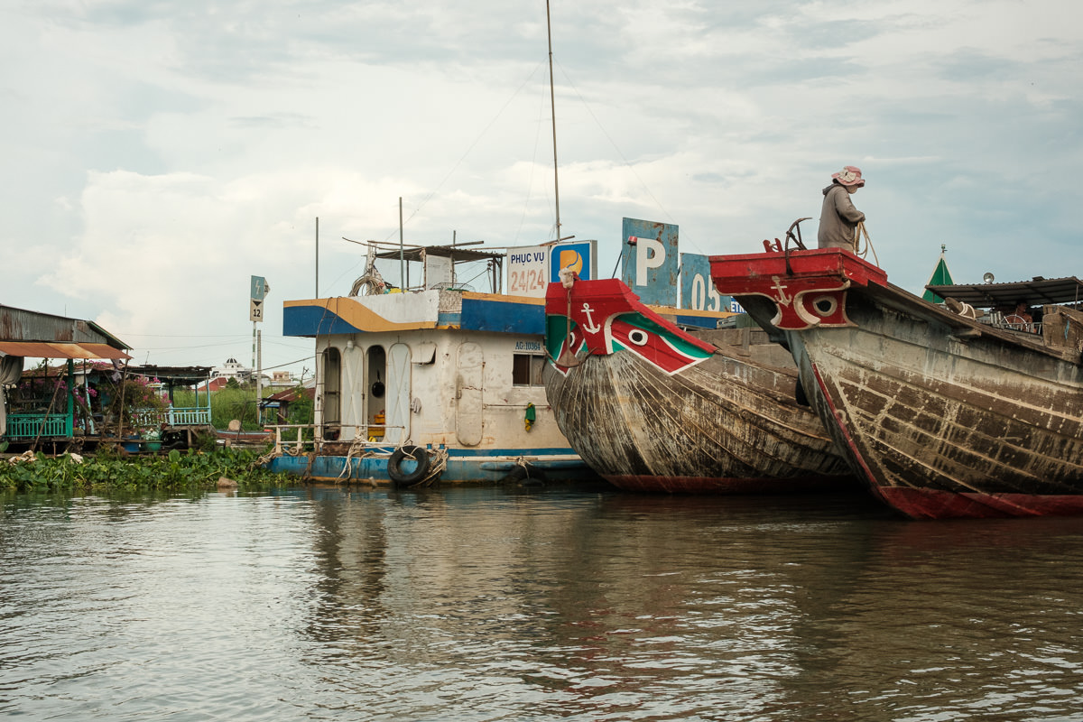Markets change in shape and location, but they share the same vibe. The first thing I do in a new place is wander around a market. In this case, Châu Đốc has a central market that stretches from the interior out to the riverside. Here, people hop on small boats to reach the other side.