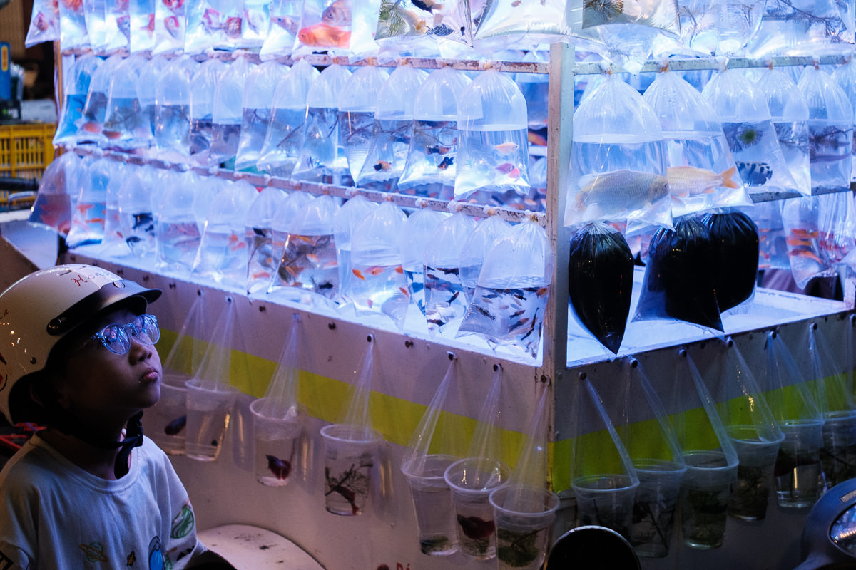 Evening arrives, and with it, the need for dinner. I pick a street food kiosk and sit down with a bowl of phở. The people working there are super friendly, and somewhere between picking up my book and finishing the second page, I find a kid sitting across from me saying hello, while his mum prepares a bowl of phở. Needless to say, they stayed until I left. The moment felt so welcoming that I decided to gift them a lottery ticket. Everywhere I’ve been so far, people are walking the streets selling those tickets, and I figured it might be a way to make two people happy.