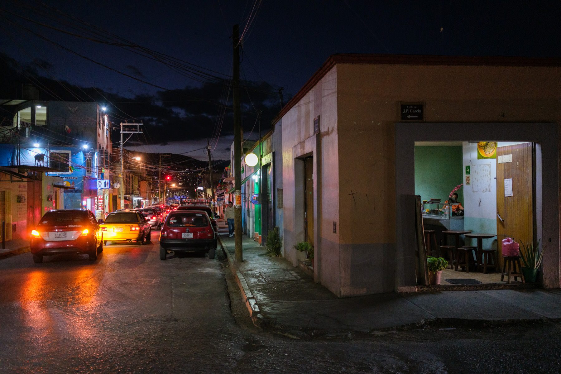 I walk slowly towards the Mercado 20 de Noviembre. The low lights cut the streets in a way that only this time of the morning can.