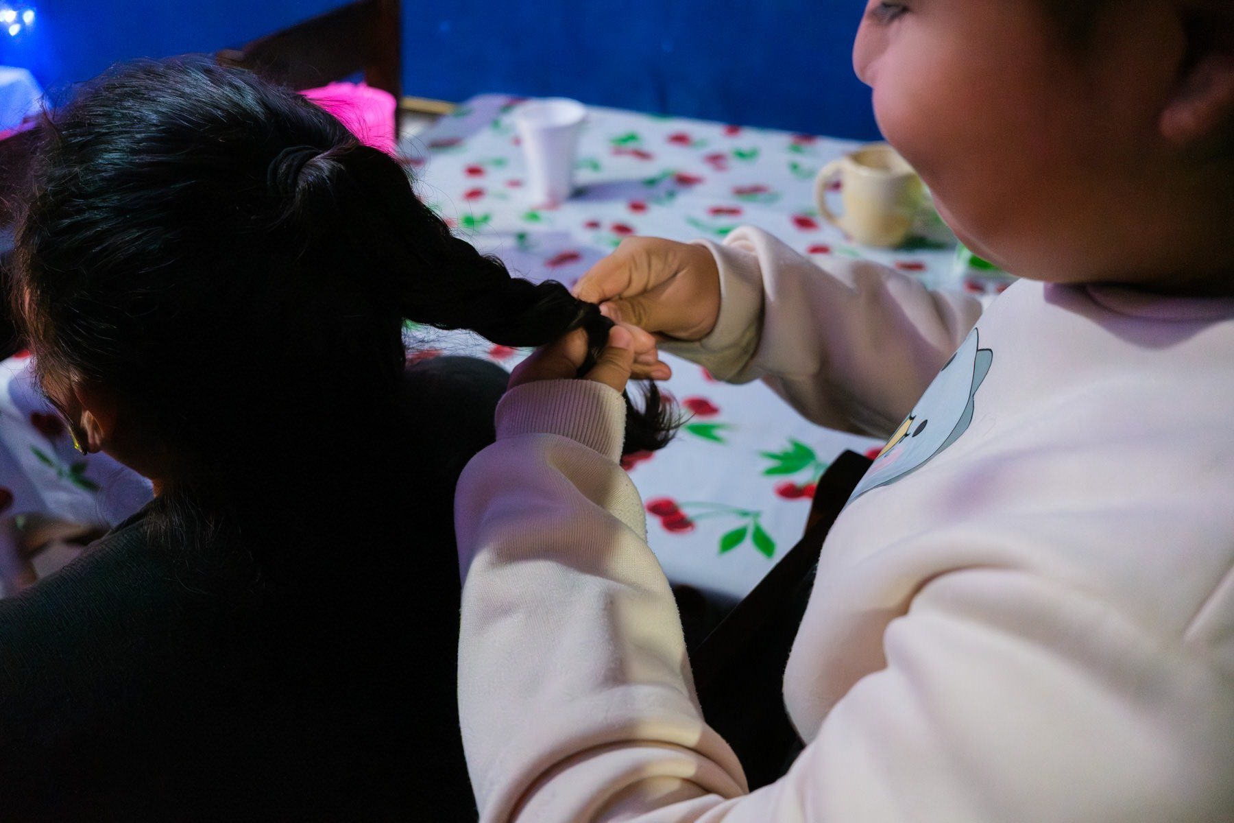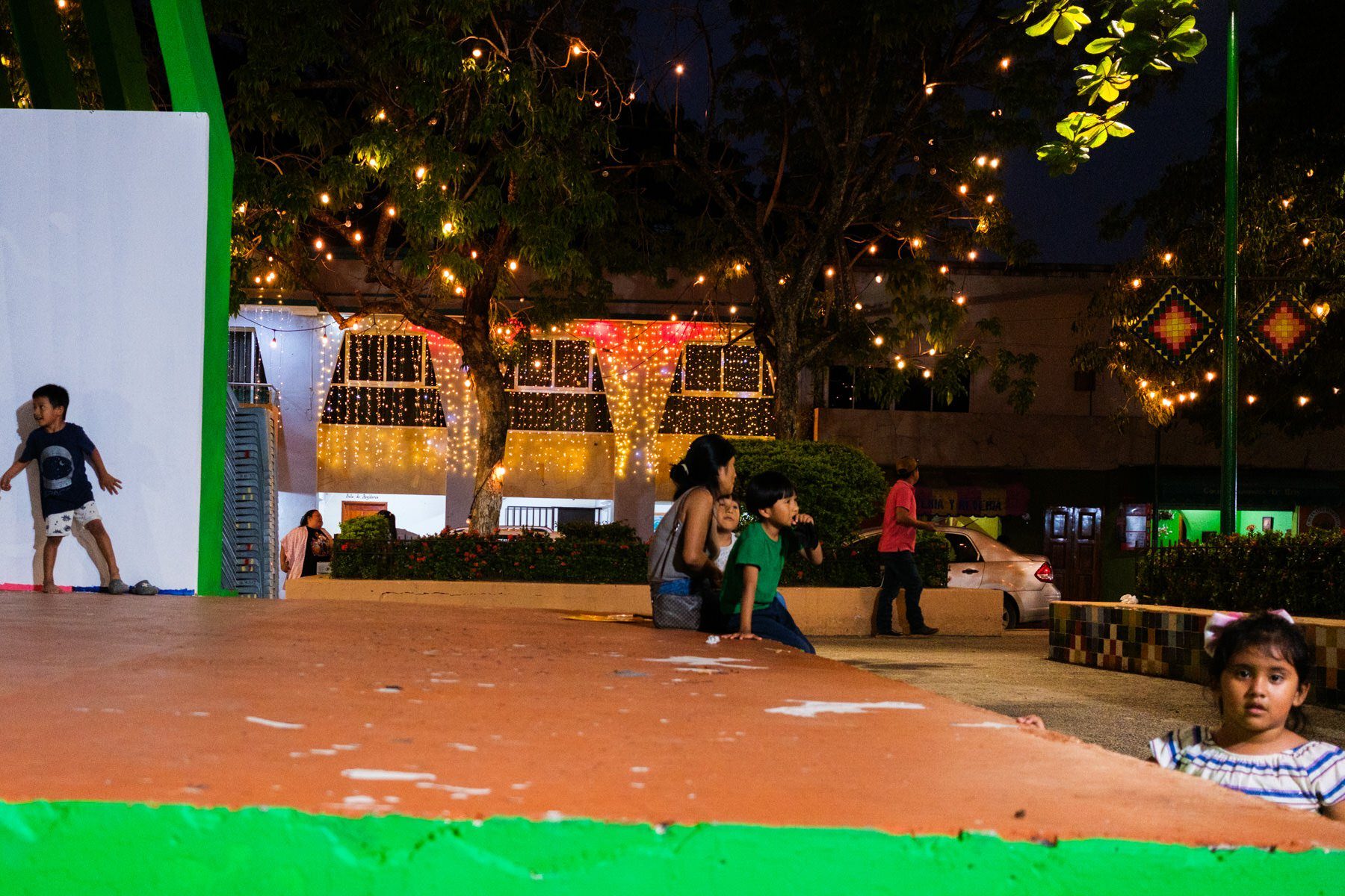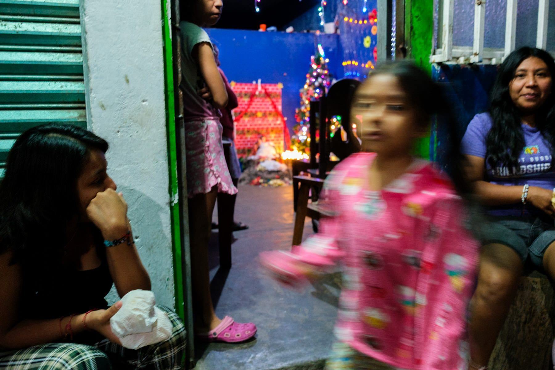 I roam a bit around when I'm attracted by a group of people. A family by the size and kind of interactions between them. I look inside the place from the other side of the street and I see a Christmas tree and some colorful lights. A few steps after passing this scene, I decide to go back and just be curious. I say hello and ask what's going on. There is always something magical about approaching big gatherings of families and friends.