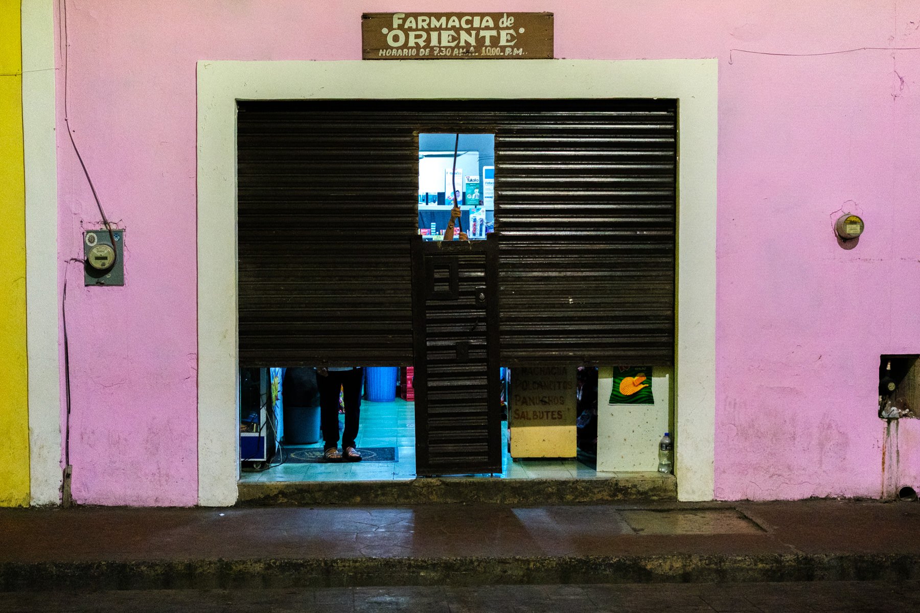 With the sun back in the sky, I wake up still haunted by the photo I missed last night. I’m aware that the reality of a photo is rarely better than what we envisioned when making it with our eyes. But I still think of it. This bugs me so much that, fast forward to the evening, I’m here, sitting in front of the store, waiting for the moment to arrive: the closing time, the moment the shutters come down. And, sadly, the theory is confirmed; the photo I had in my mind was different.