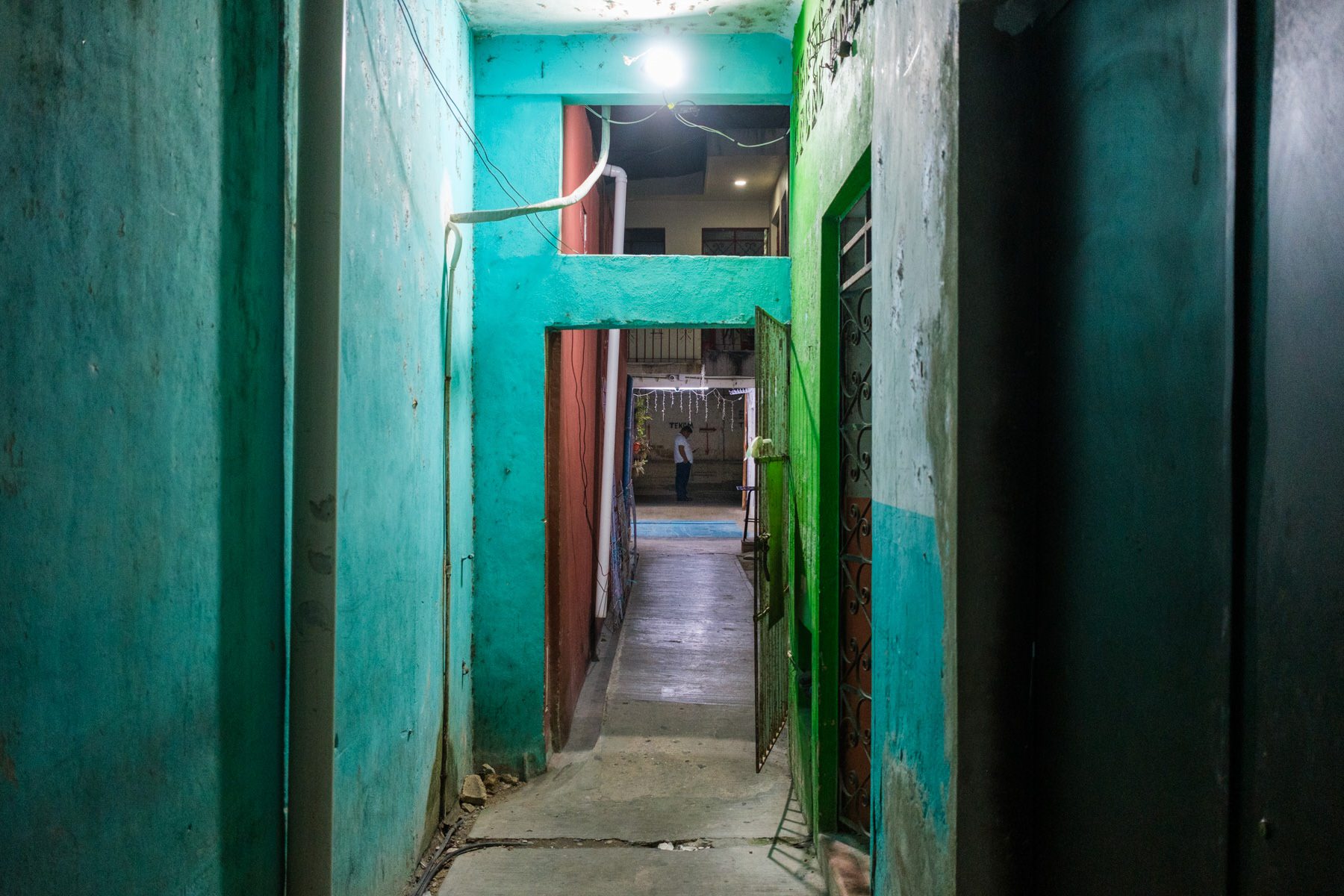 The vibes of this night remind me of rural Thailand, in particular Chiang Dao. Green lights hitting colored walls as life winds down for the night.