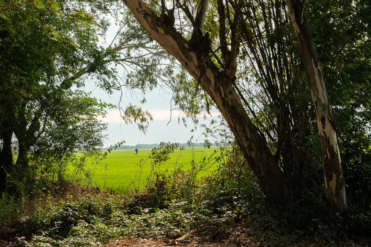 Very few fishing boats are out, which clashes with my expectations of seeing fishermen returning home. But I still enjoy the ride, especially when we stop by a rice field and the guy explains that we’re exactly one rice field away from Cambodia.