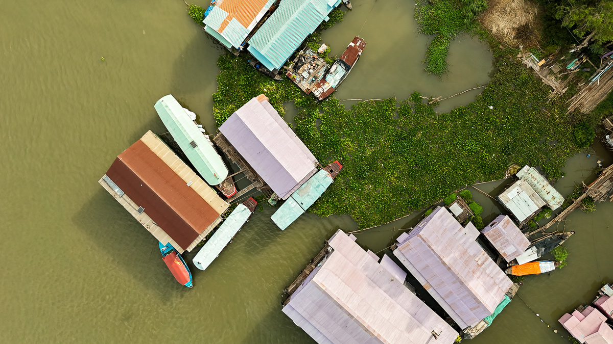 I ask if I can fly the drone, but he tells me the border patrols wouldn’t be happy about it. Luckily, on the way back, we stop at a floating café where I finally get to test the drone. Before leaving for Vietnam, I wasn’t sure whether to bring it—but now I know I made the right choice.