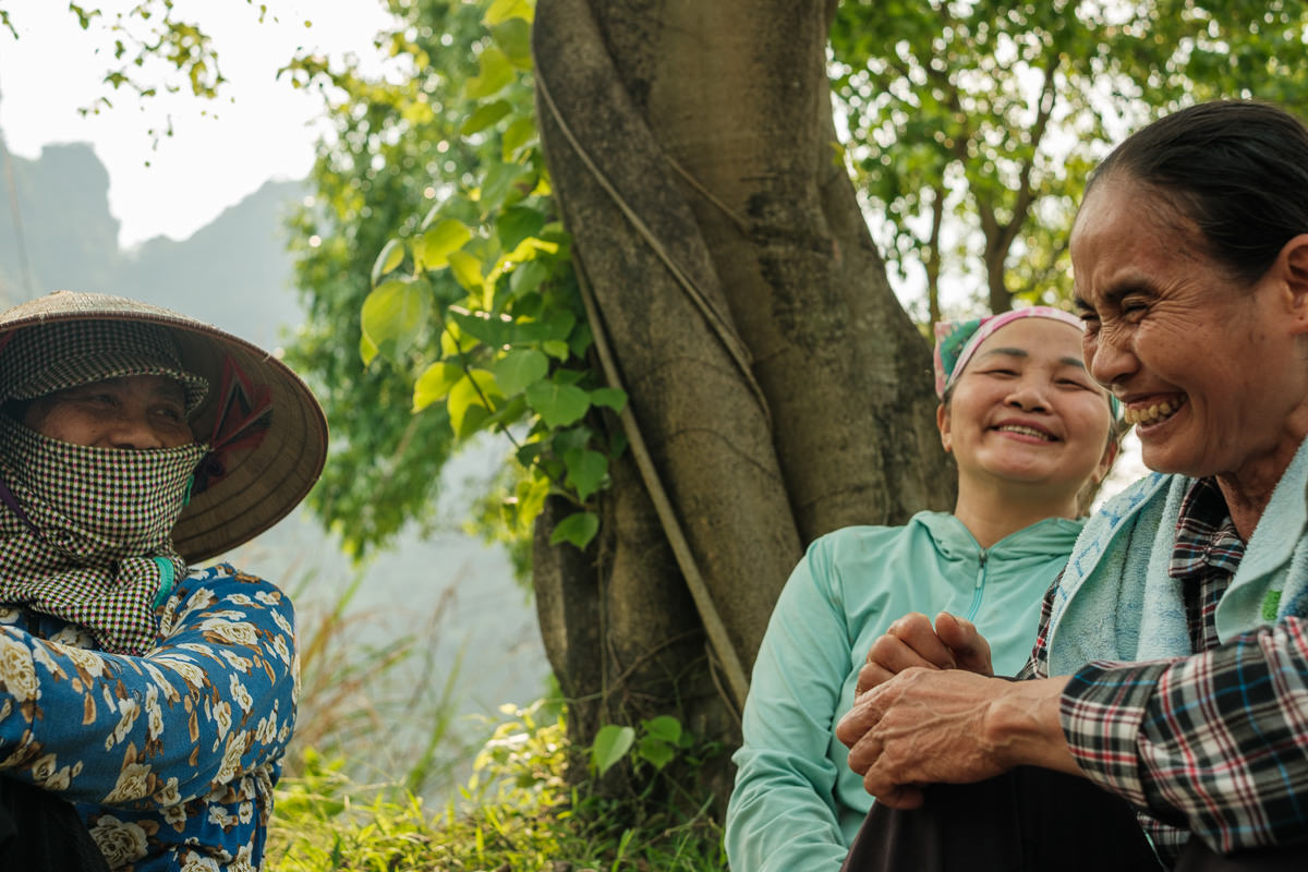 Looking at the sidelines, I start to notice a pattern: there are groups of field workers sitting on the side of the road, chatting and chilling. What better situation for a stop-by?